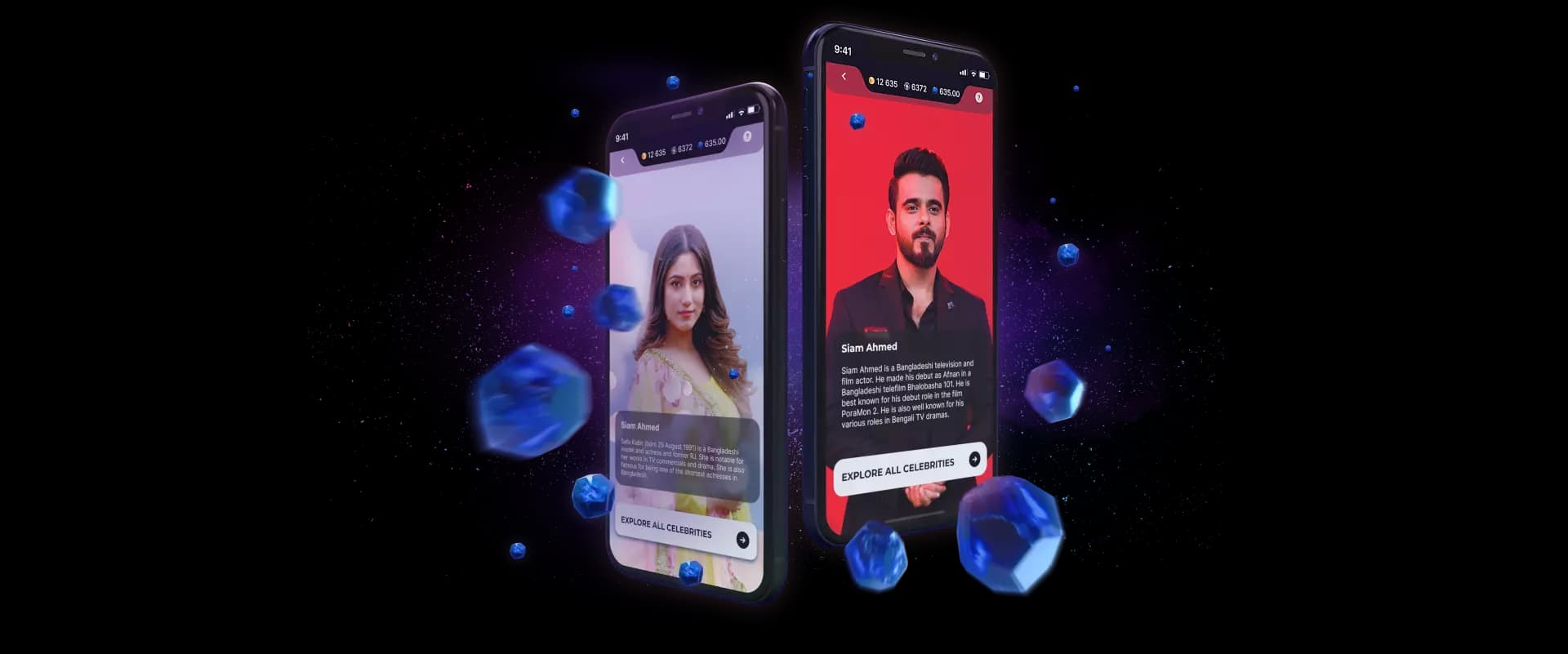 In our mobile app you can earn MY SEVEN Tokens with your favourite celebrities by completing various actions.